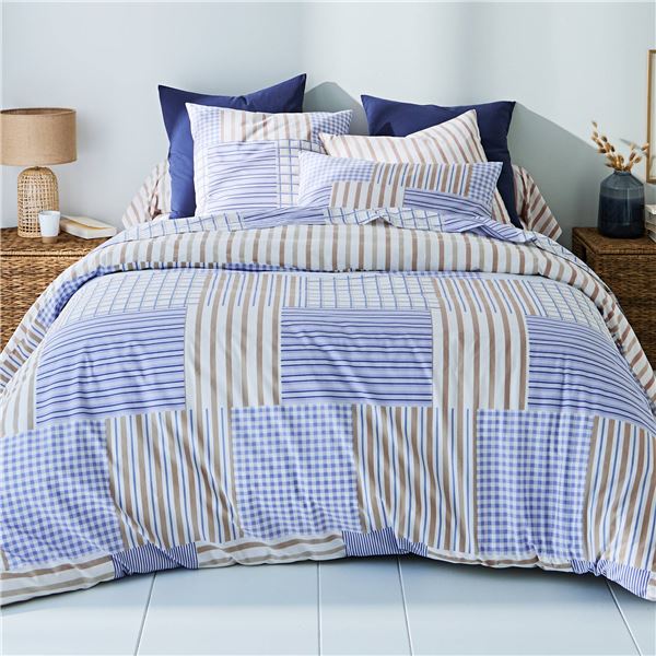 - Motif principal patchwork : drap plat, recto des taies d'oreiller, recto de la housse de couette.