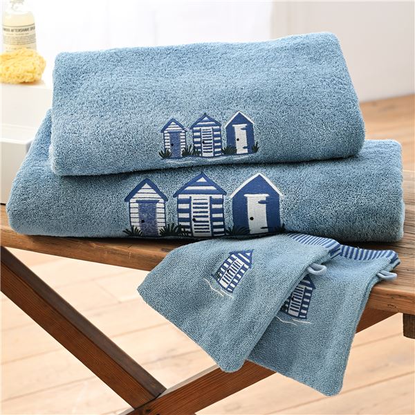 Évadez-vous chaque matin avec ces serviettes de toilette inspirées des charmes du littoral. Ce linge de toilette se distingue par ses ravissantes broderies placées représentant des cabines de plage colorées, apportant une note de fraîcheur et de vacances à votre salle de bain. Confectionnées en pur coton, ces serviettes éponge de 500 g/m² allient douceur et efficacité d'absorption pour un séchage parfait. La qualité des finitions et le soin apporté aux détails brodés donnent envie de les exposer bien en vue à la salle de bain !