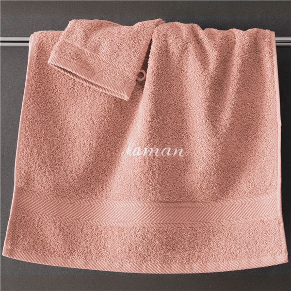 Faites votre choix parmi cette vaste gamme de serviettes et draps de bain personnalisables, au nom, prénom, phrase ou autre inscription, laissez aller votre imagination ! Une idée cadeau appréciée de tous et pour toutes les occasions : naissance, anniversaire, fête des mères... Ce linge de toilette est réalisé dans une superbe qualité d'éponge en pur coton prélavé, doux, moelleux et immédiatement absorbant.