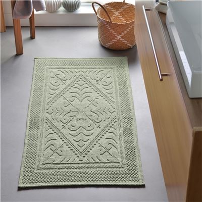 Appréciez la qualité de ce tapis de bain décor jacquard joliment travaillé en relief. Le tapis de bain décor jacquard donne une touche de chic et d'élégance à la pièce. Sa belle épaisseur lui assure une bonne tenue au sol. Décliné en plusieurs coloris et plusieurs formes (tapis rectangulaire et descente de bain), ce tapis de bain en coton s'intègre aisément dans la déco de votre salle de bain.