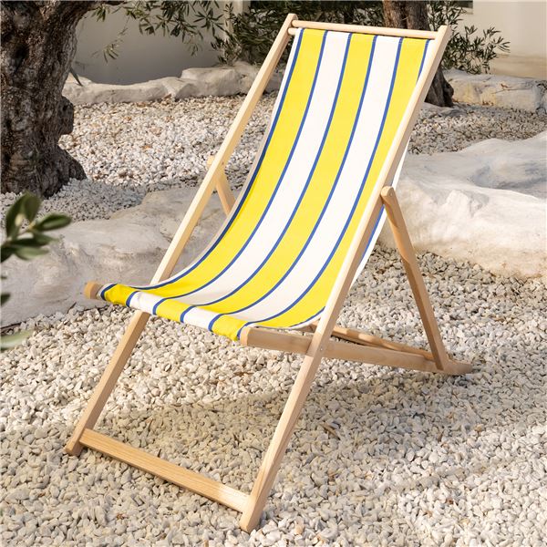 Votre transat fait grise mine ? Offrez-lui une seconde jeunesse avec cette toile de chilienne à rayures, une création exclusive signée Becquet. Rien de tel que des rayures graphiques et des couleurs pétillantes pour réveiller votre extérieur. Conçue pour durer, cette toile allie la douceur du coton à la robustesse du polyester. Le secret de sa longévité ? Son traitement déperlant. Une petite maladresse avec votre verre de thé glacé ou une rosée matinale ? Pas de panique : les gouttes glissent sur la fibre sans l'imprégner. Il suffit d'un geste rapide pour tout effacer ! Et pour s'adapter parfaitement à votre structure en bois, nous vous proposons cette toile en 2 dimensions au choix. Sa finition avec ourlet garantit un maintien impeccable et une solidité renforcée au fil des utilisations.