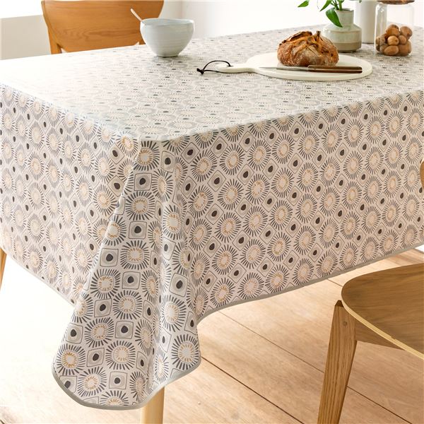 Envie d'une table moderne sans les contraintes de l'entretien ? Laissez-vous séduire par cette toile cirée au motif graphique, qui allie design contemporain et praticité absolue. Avec ses motifs géométriques élégants dans des tons sobres, elle s'intègre parfaitement dans une cuisine urbaine ou sur une terrasse épurée. Cette nappe a été pensée pour simplifier votre quotidien : elle est parfaitement imperméable, grâce à son vernis antitache, les petits accidents du repas ne sont plus un souci, et un coup d'éponge suffit pour la rendre impeccable.